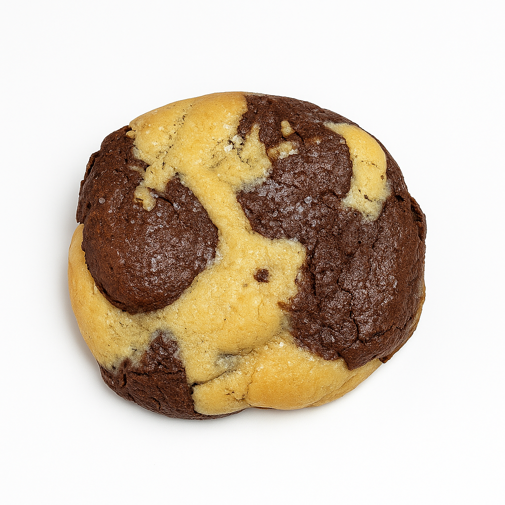 Two favorites in one. A soft, moist fusion of blondie and brownie baked into a single cookie, delivering buttery vanilla richness and dark chocolate depth. Finished with a sprinkle of sea salt flakes for the perfect balance.